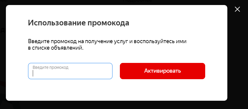 Введите промокод и нажмите на кнопку Активировать.