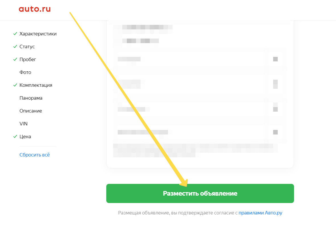 После заполнения всех пунктов нужно нажать на кнопку «Разместить» в самом низу страницы: