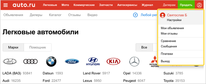 - Авторизуйтесь на Авто.ру.